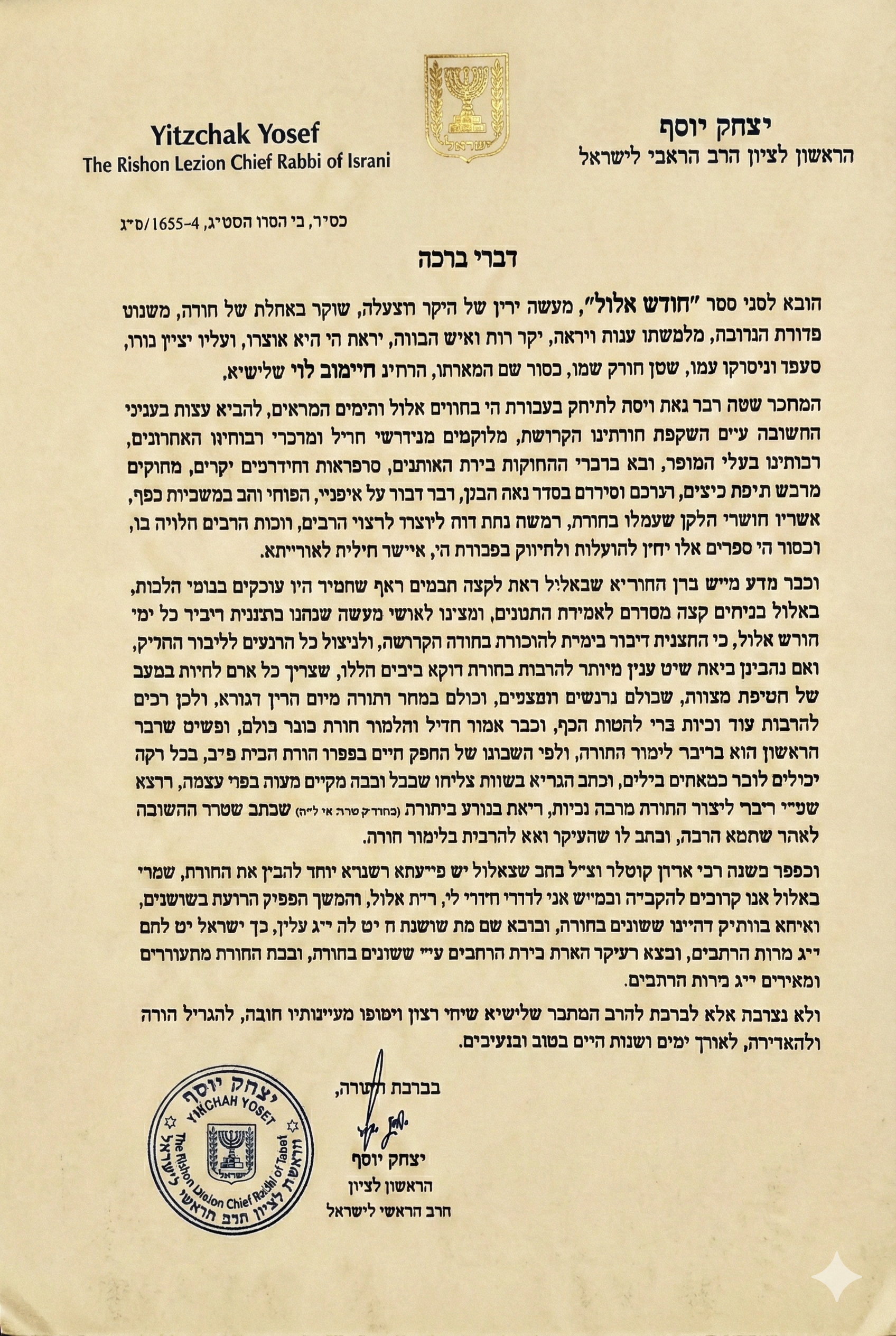 יסוד עבודתי כמוהל מוסמך נשען על ברכתם והכוונתם של גדולי ישראל. התמונה הזו עם מרן הרב עובדיה יוסף זצוק"ל היא עבורי מצפן מוסרי והלכתי בכל ברית מילה שאני עורך. היא מזכירה לי יום יום כי להיות מוהל זו אינה רק 'עבודה', אלא שליחות קודש. זו שליחות הדורשת שילוב נדיר בין מקצועיות רפואית גבוהה לבין לב רחום ויראת שמיים אמיתית".